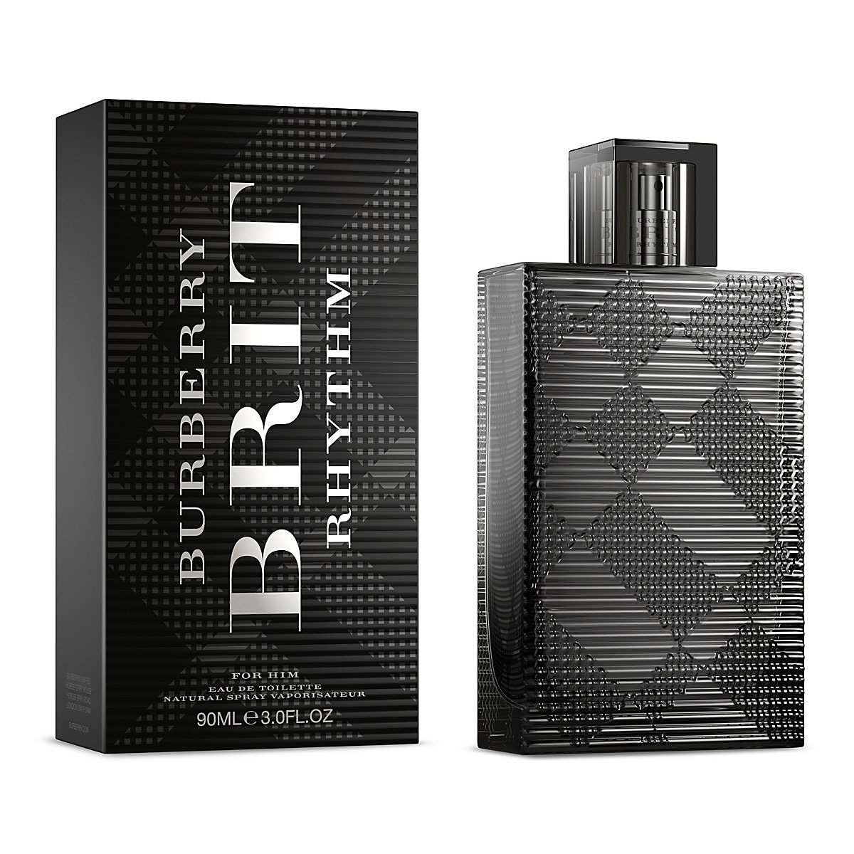 Аромат Brit Rhythm Him вышел на рынок в сентябре 2013 года. Вдохновением для создания новинки послужила тема сочетания запахов и звуков, а также живая музыка. Парфюм характеризуется как сексуальный и провокационный, полный энтузиазма и энергии. Подходит для активных и уверенных в себе молодых мужчин.