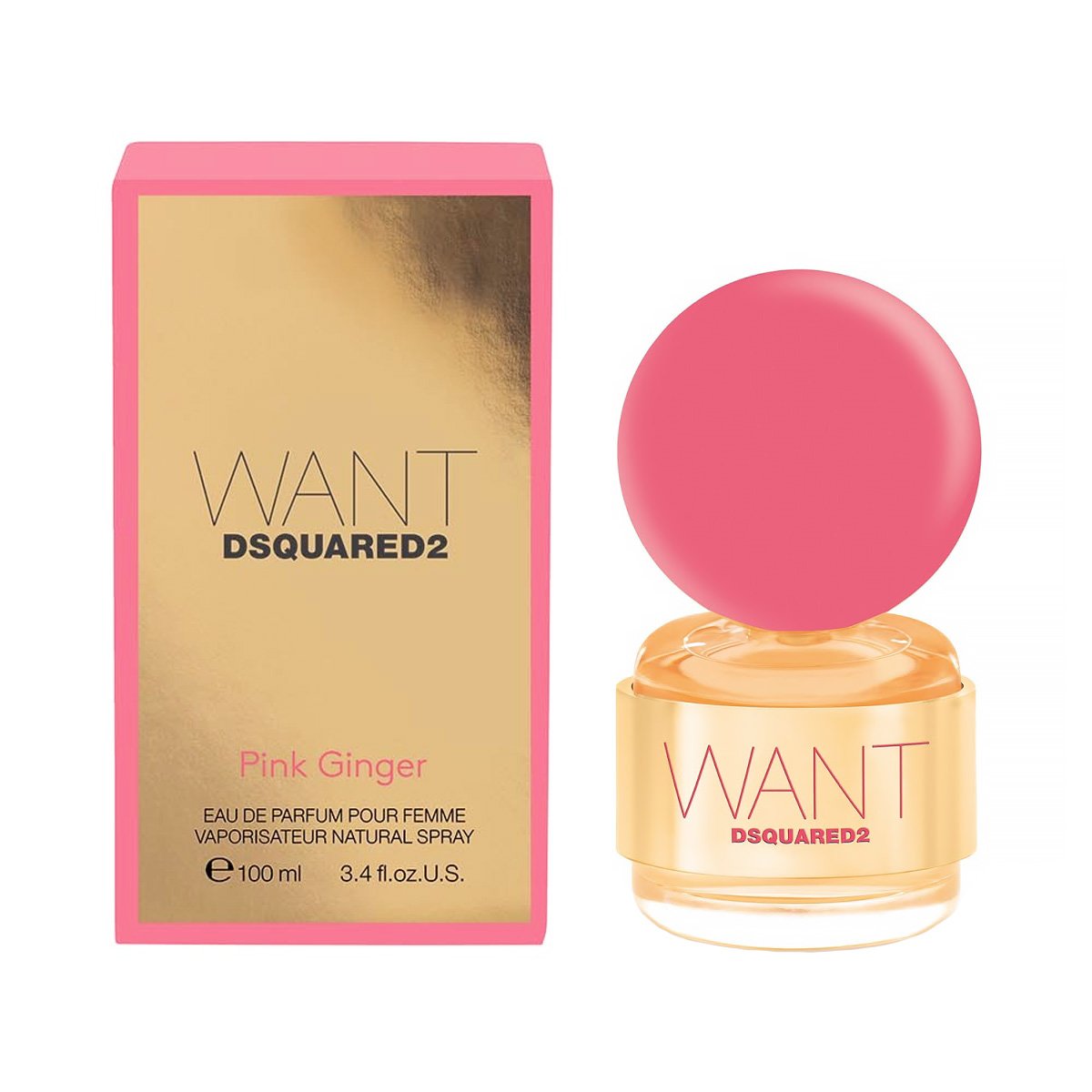 Want Pink Ginger — новый сияющий, игристый, пряный аромат для женщин из группы восточных цветочных запахов от бренда Dsquared. Создан в 2016 году парфюмером Aurelien Guichard. Фланкер популярного ванильно-гурманского аромата «Want», выпущенного в прошлом году. Дизайн флаконов перекликается, но на этот раз стоппер у нового аромата имеет ярко-розовый цвет, обещая игристые и пряные ноты на базе чувственной ванили.