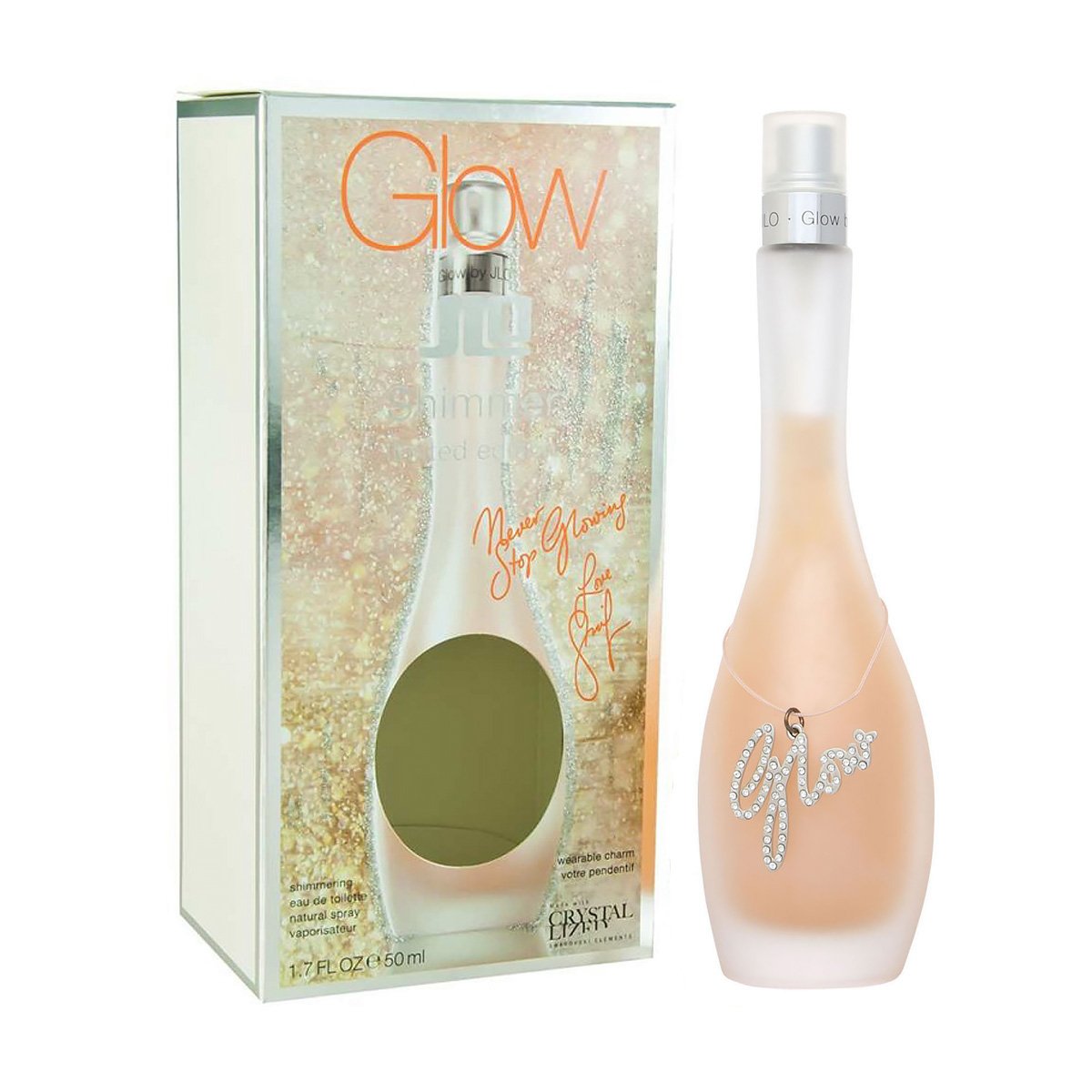 Glow Shimmer Limited Edition – оригинальный букет для женщин, поглощающий метаморфозами оттенков и нот. Выпущен в 2007 году. Дженнифер Лопес создала мерцающую версию своего аромата «Glow», приурочив ее к празднованию 5-летия оригинала. Цветочно-цитрусовая композиция осталась прежней, ее лишь разбавили нотками ванили и корня фиалки. Флакончик напоминает женский силуэт, украшенный подвеской с камнями «Swarovski».