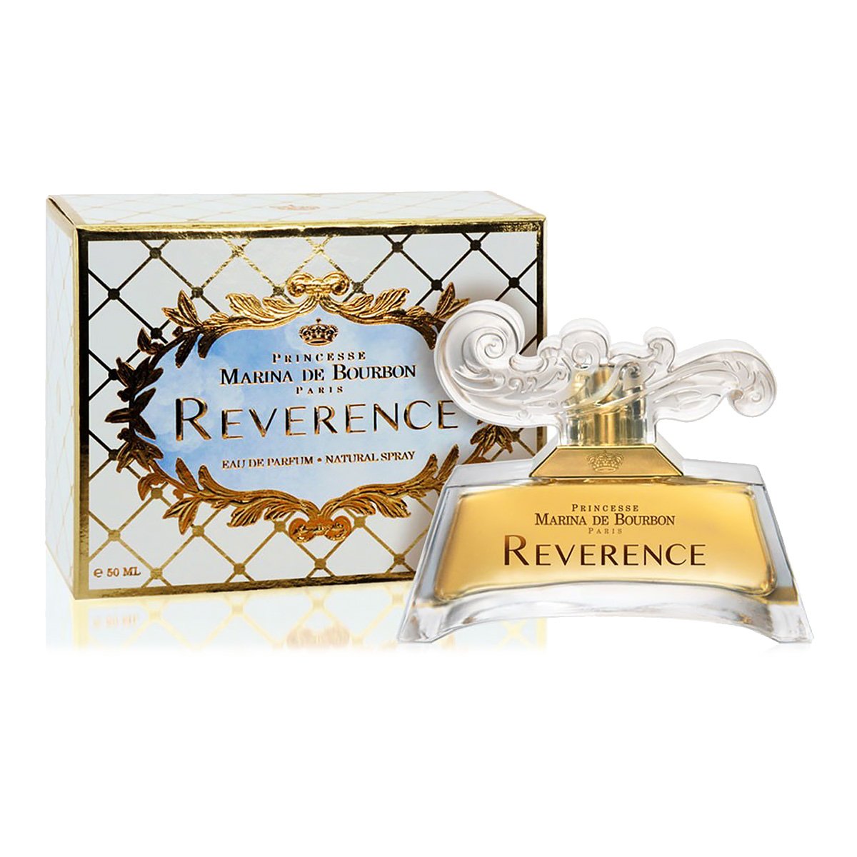 Marina de Bourbon Reverence — парфюм утонченности и элегантности. Вышел в свет в 2007 году. Своей роскошью он воспевает непревзойденный шарм и богатство Франции, шик балов средневековья.