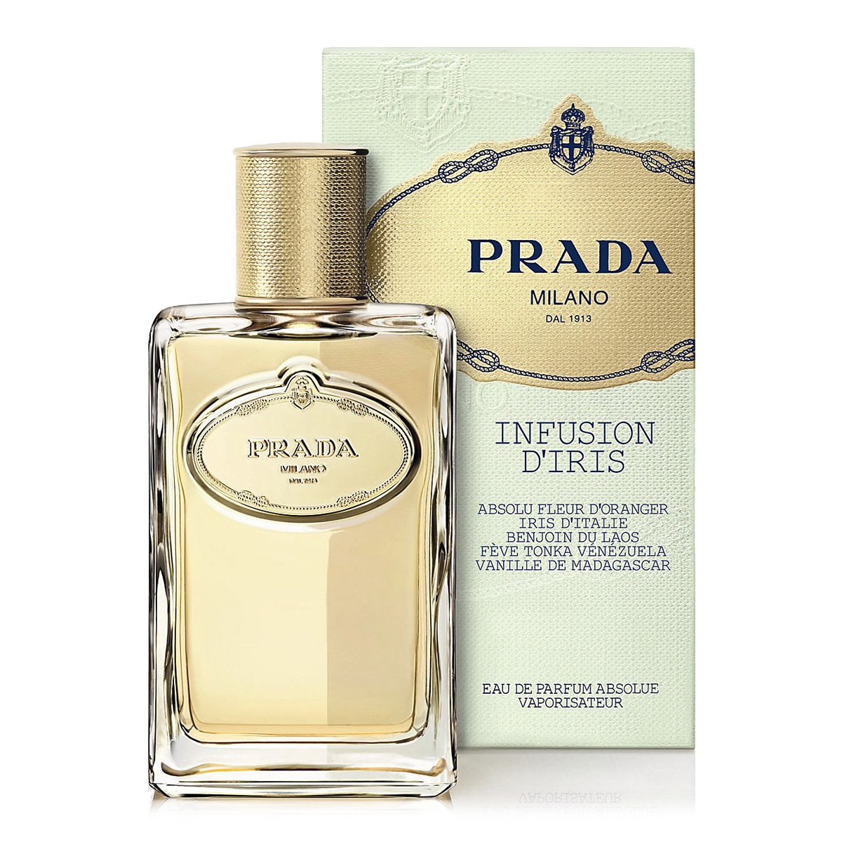 Знаменитый итальянский дом моды Prada выпустил женский аромат Infusion D’Iris Absolue в 2012 году. Он принадлежит к группе восточных цветочных ароматов. Парфюмером является Daniela Roche–Andrier.